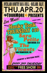 April is heating up and we are warming up for our Southern California trip with a show in Oakland, CA at the Overland Bar. Come on out and see us with our favorite pedal steel player, Larry Chung!